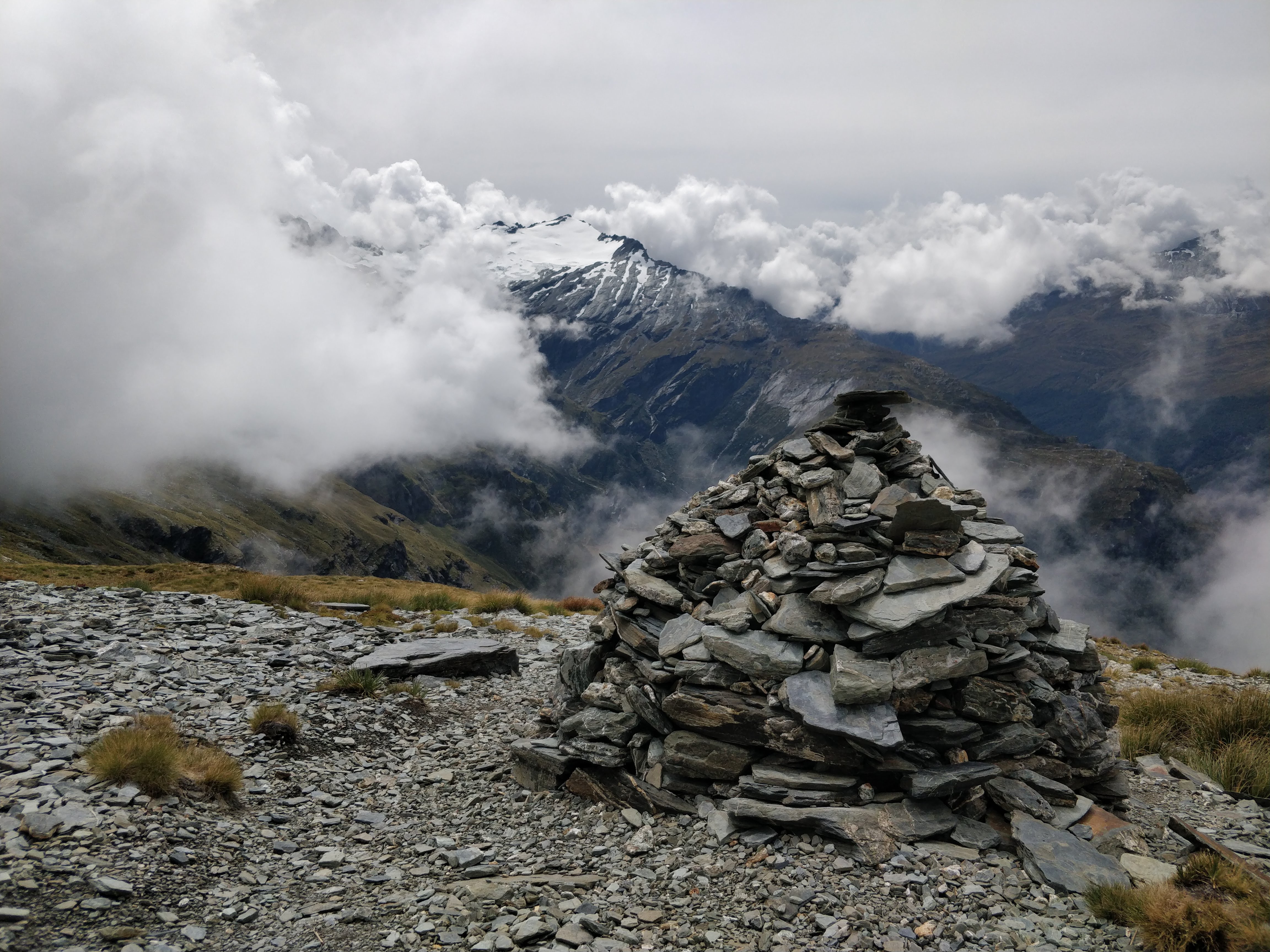 One very-hard-to-miss cairn. Looking towards Mt Clarke