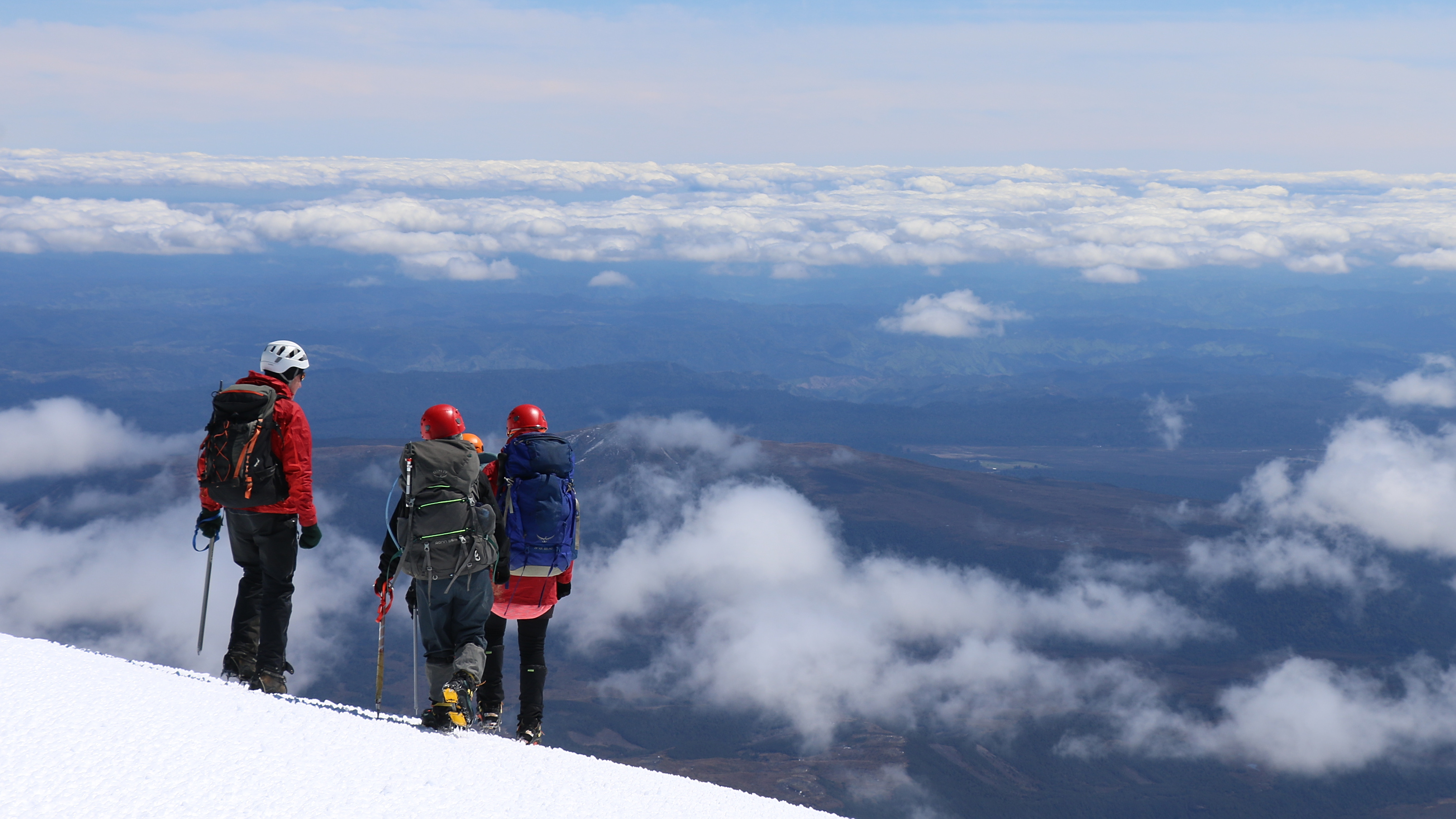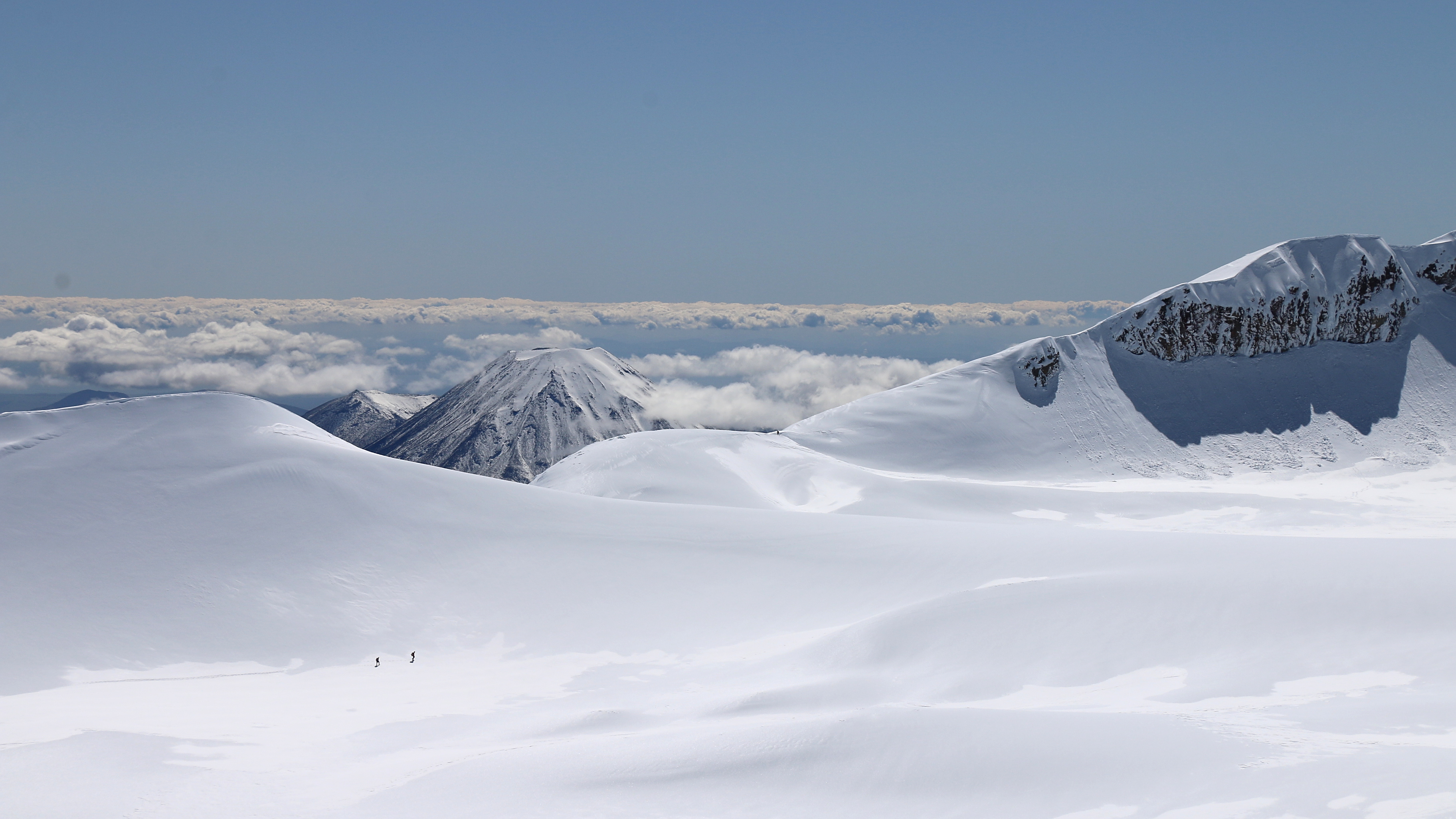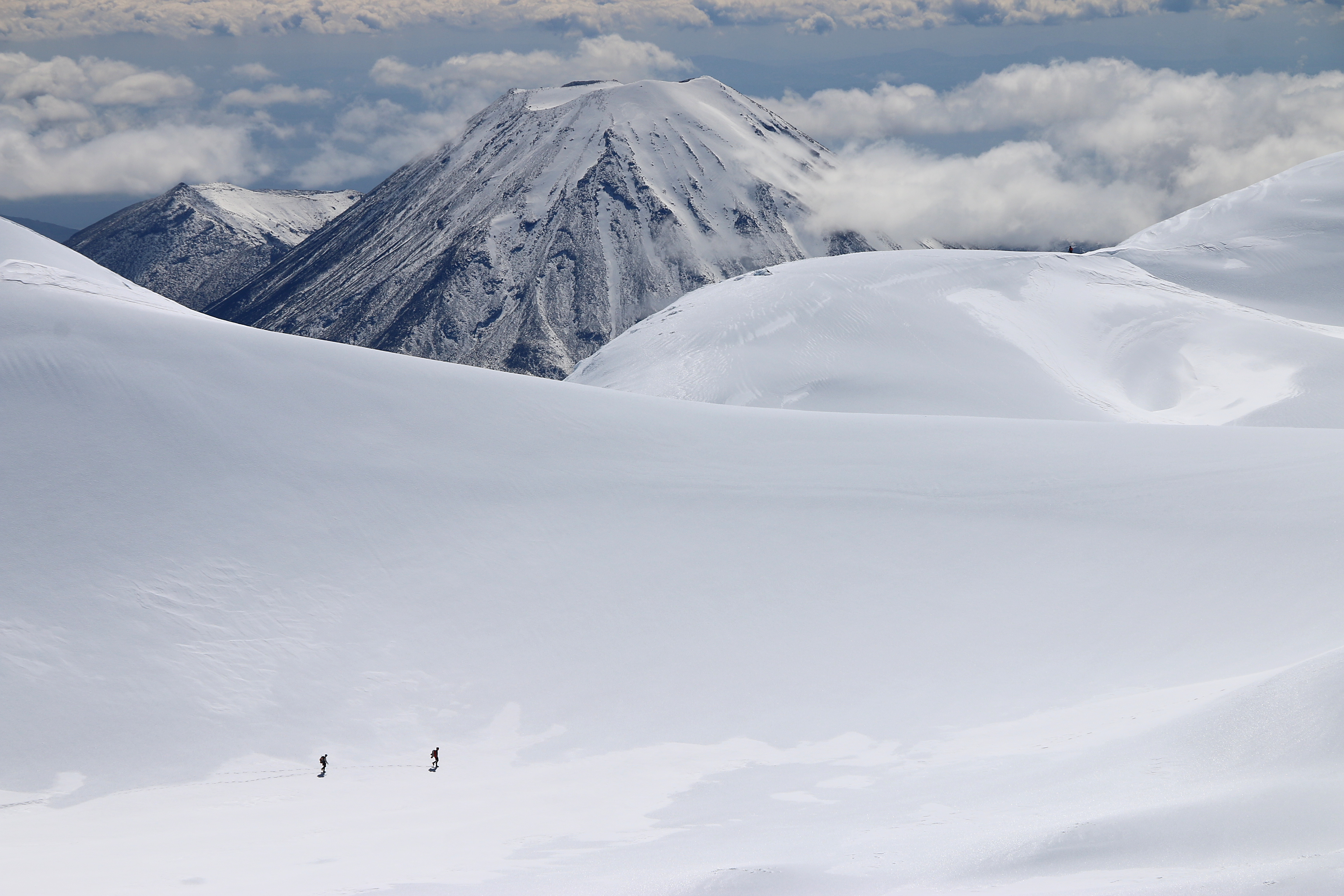 Looking towards Tukino and Te Heuheu from the summit plateau (spot all the little people)