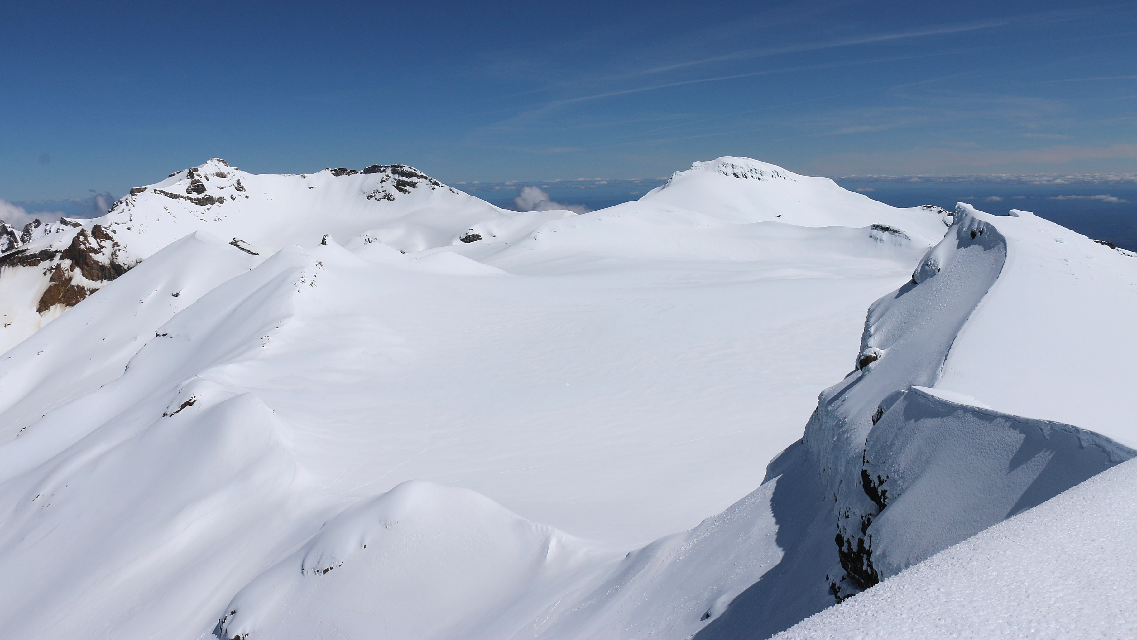 Ever since moving to Te Ika-a-Māui I have been wanting to explore Ruapehu. Almost two years later, and I actually have a few of the requisite skills. We were treated to a bluebird day, and aimed to summit Te Heuheu. We took a roundabout route up the Whakapapa glacier and across the Summit plateau, to avoid potential avalanches on the northern aspects, but met some other WTMC members near the summit who told us that Te Heuheu ridge was safe, which turned the day into a perfect day loop.
