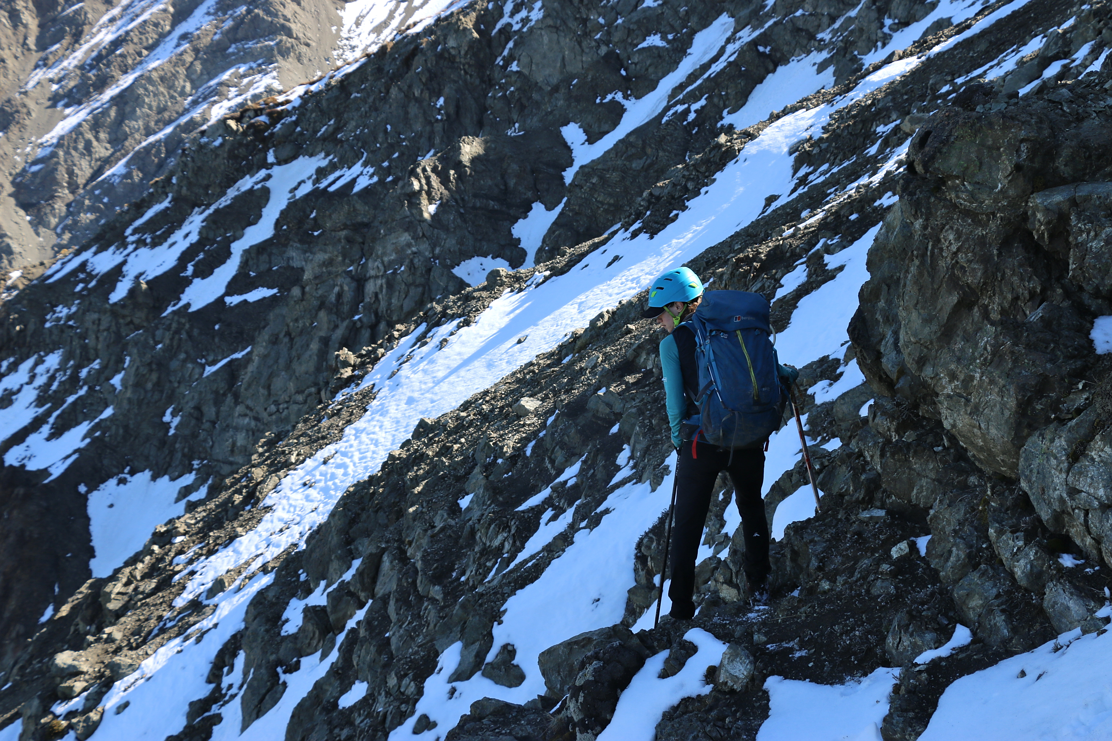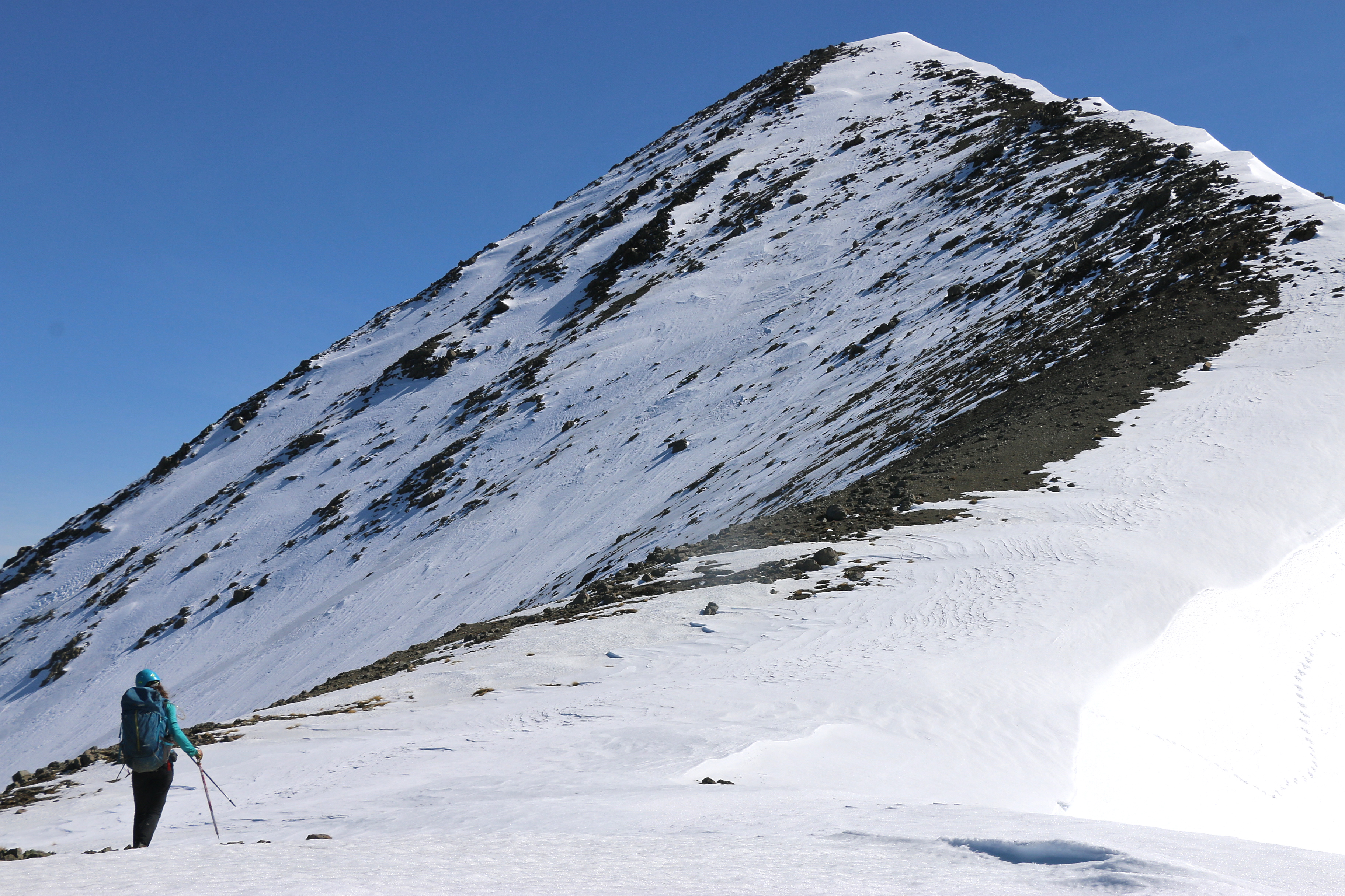 We managed to reach the false summit about 30m below Mt Snowflake just in time for out turn around time (1pm). The route to the actual summit looked pretty infeasible with the current snow levels (and the summit itself looks less impressive that what we had reached), so there was minimal disappointment in not getting there.