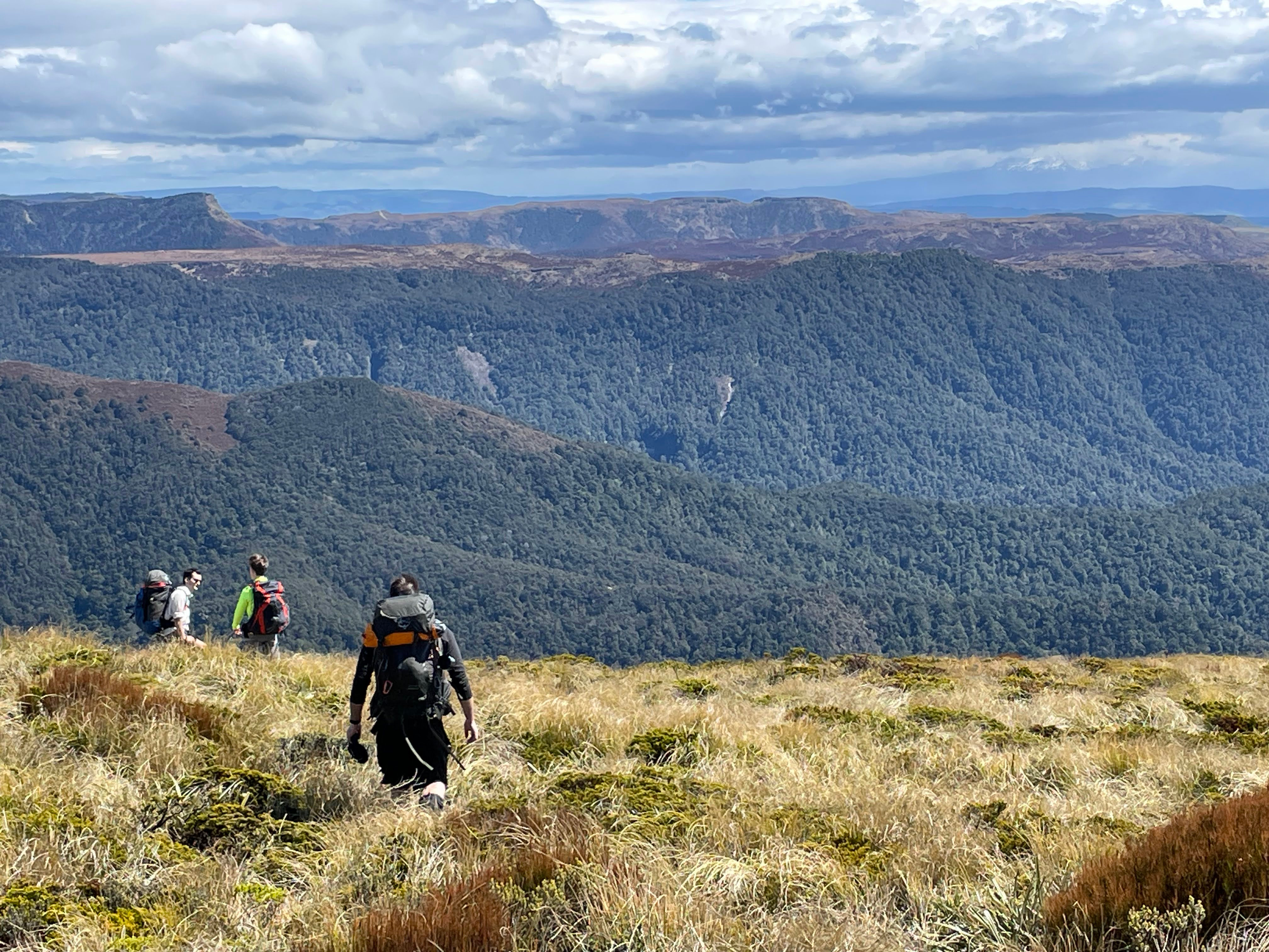 Some of the tops travel was easy going, but descent sections involved annoying tussock. The situation was not helped by the wind picking up as we headed over Piopio. We thought it would become boggy as we approached Totora Spur, as the topo map shows a large number of tarns. But fortunately, these were well confined and easy to navigate.