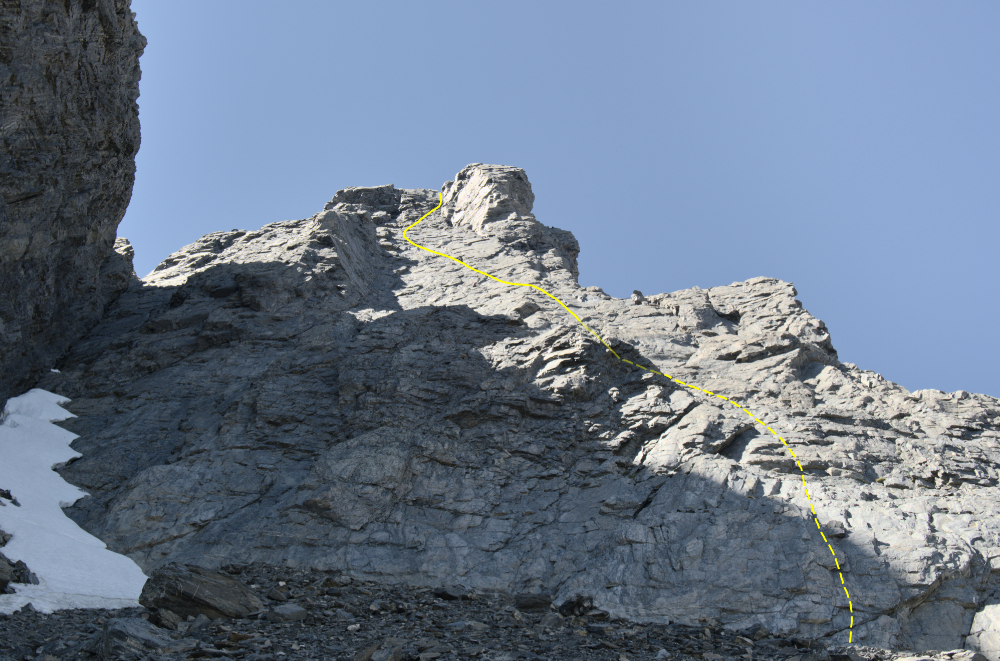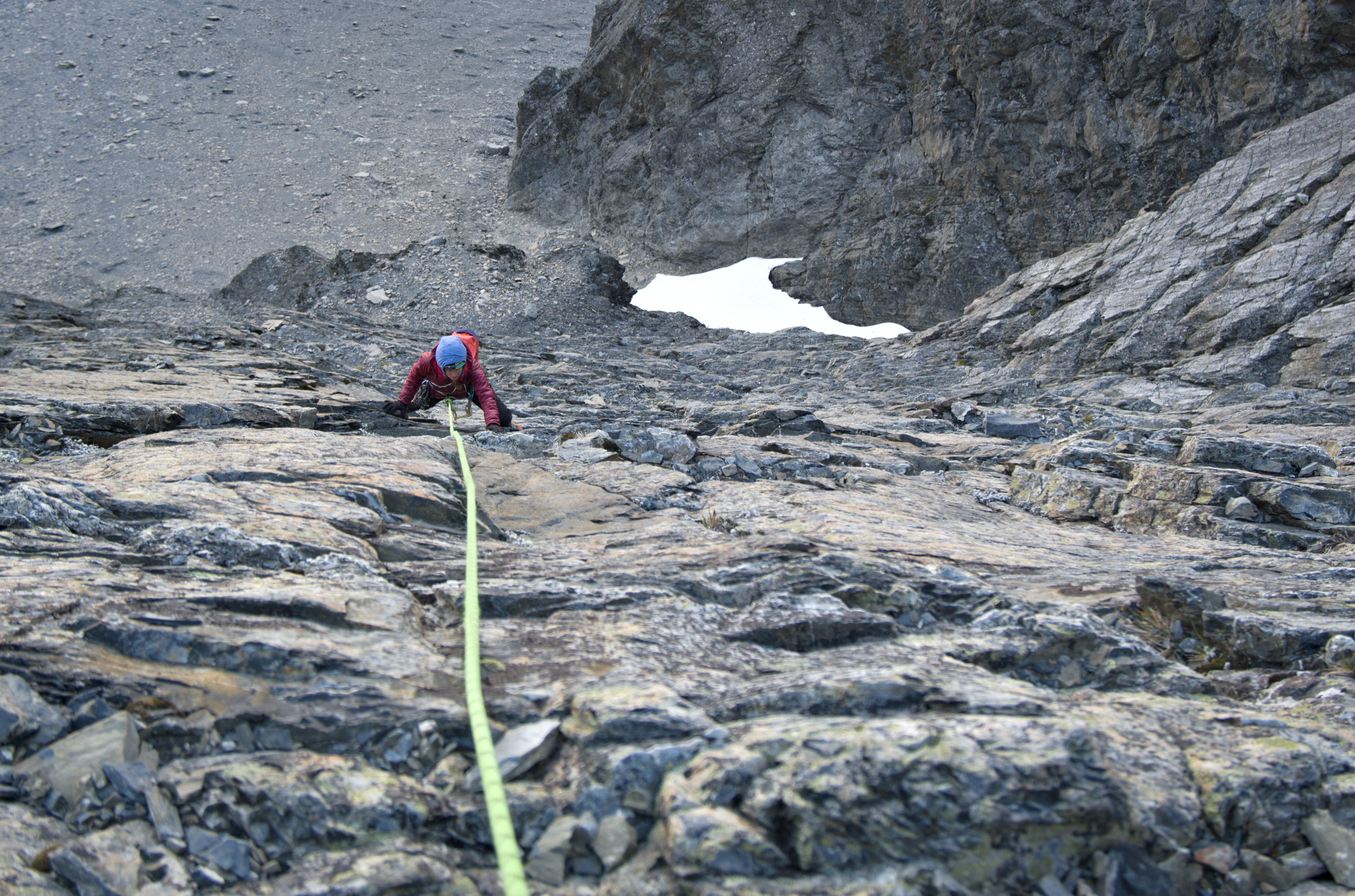 For gear we had a single rack (#0 to #3), a bunch of wires, 12 extendable draws (more than enough), and a 60m single rope.